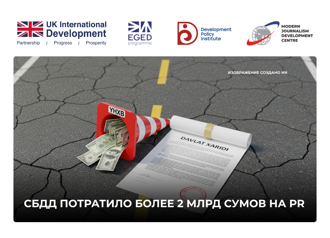 Самый крупный контракт на 1 млрд сумов заключили 15 января 2025 года. Из него следует, что с января по декабрь 2025 года СБДД выплачивало по 90 млн сумов каждый месяц Qalqon PR-Media. Из контракта не ясно сколько единиц продукта предоставила организация.
