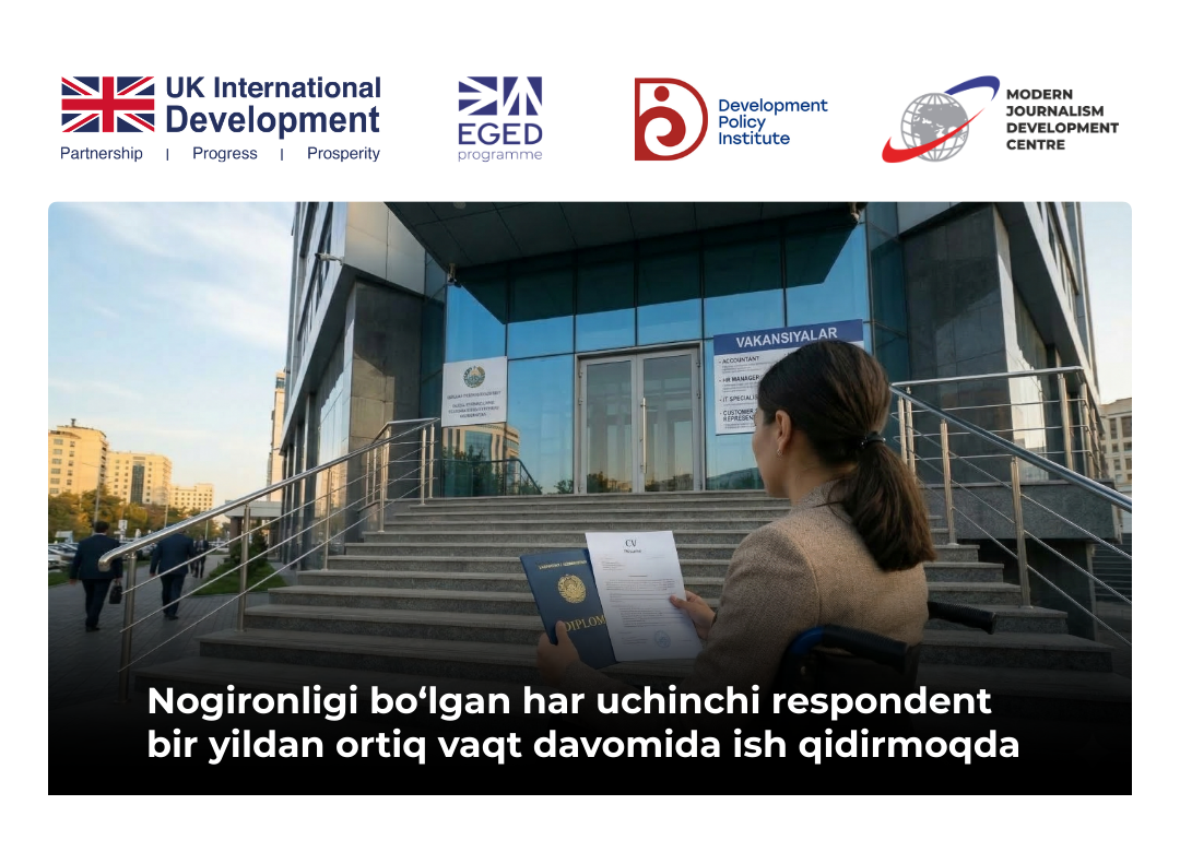 Davlat dasturlari va kvotalar mavjudligiga qaramay, O‘zbekistonda nogironligi bo‘lgan shaxslar ishga joylashishda jiddiy qiyinchiliklarga duch kelmoqda. Buni o‘zbek va rus tillarida o‘tkazilgan so‘rovnoma natijalari ham tasdiqlaydi.